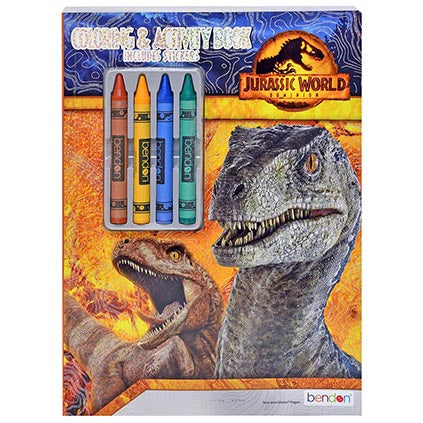 Jurassic World licensed colouring and activity book with crayons and stickers