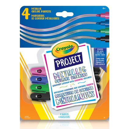From The Crayola Project Line, Metallic Outline Markers Have A Unique Laydown That Display 2 Colours With One Stroke. When Applied To Poster & Foam Board The Ink Naturally Separates And Creates A Beautiful Outlining Detail. Add Special Shimmery Effects To Art Projects, Crafts, And Homework Assignments. This Set Includes 4 Metallic Outline Markers Great For Both Light And Dark Surfaces Featuring Black, Green, Blue, And Pink Outlines.
