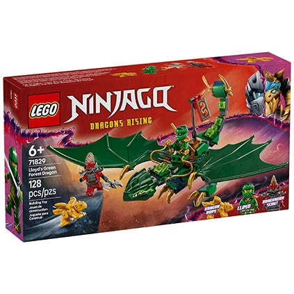 Boys and girls aged 6 and up can soar into the sky to recreate aerial scenes from season 3 of the NINJAGO® Dragons Rising TV show with Lloyd’s Green Forest Dragon (71829) toy building kit. It features an impressive dragon toy with a posable tail, neck, legs, large wings and hands, plus a saddle for a minifigure to ride on its back.