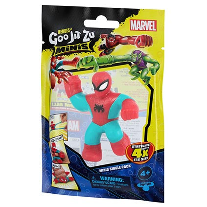 Heroes of Goo Jit Zu the Marvel edition Minis are back with all-new characters to stretch, squish and battle with! These mini, stretchy versions of your favorite Marvel Superheroes are a great way to play with Goo Jit Zu! Small in size at just 2.5 inches / 6.3cm tall but big in stretch and squish, all these Marvel Mini Heroes are ready to battle. Each Mini Marvel Hero can stretch their amazing bodies up to 4 times their actual size. Stretch and wrap them around each other to watch them battle as they go back to their original shape and size. There are eight more Super Stretchy Mini Figures to collect. Many of your favorite Marvel Heroes are available in this Mini Goo Jit Zu range including Spider-Man, Red Hulk, The Lizard, Green Goblin, Venom, Miles Morales, Doc Ock, War Machine and Black Panther! Discover a new way to play and save the day with these cool collectible Mini Marvel themed Heroes of Goo Jit Zu!