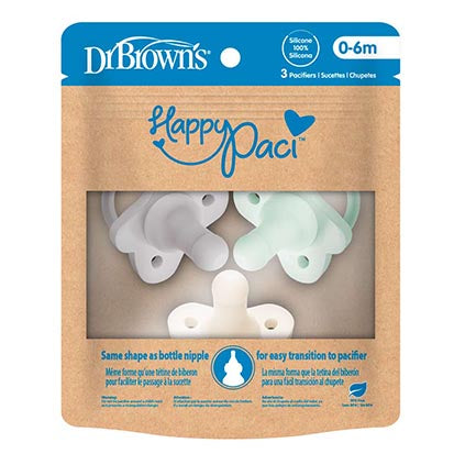 Introducing Baby To A Pacifier Is Made Easy With The Familiar Dr. Brown’S Shape Baby Is Used To. Plus, Parents Love The One-Piece Construction Of The Happypaci™. This Lightweight, 100% Silicone Pacifier Features A Contoured Butterfly-Shaped Shield That Curves Away From Baby’S Face For Comfort, Providing Plenty Of Room For Little Noses And Cheeks. Easy Clean, Dishwasher (Top Rack) And Sterilizer Safe. Comes In A Variety Of Colors. Bpa Free. 0-6 Months.
