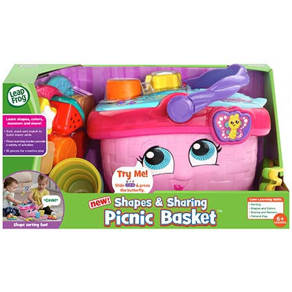 Learn About Colors, Shapes, Manners And More While On A Pretend Picnic With The Shapes And Sharing Picnic Basket. Lift The Lid To Hear Cheerful Phrases And Unpack The 15 Play Pieces, Including Multi-Color Plates, Forks, Cups And Food. The Interactive Shape Sorter On The Lid Recognizes The Food Pieces And Says The Shape And Color Of Each One. Hear Polite Food Requests And Delightful Learning Songs By Pressing The Butterfly Button. Drop The Correct Food In The Basket For Rewarding Responses That Encourage Good Manners. Learning’S A Picnic With Leapfrog'S Friendly Basket!