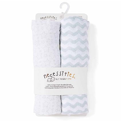 This Two Pack Of Swaddling Blankets Shows Off Sweet Prints On Breathable Cotton Muslin.