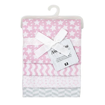 Pink Star Receiving Blanket 4pk