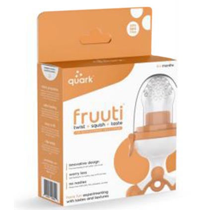 Baby Feeding Fruit Pacifier: Twist, Squish, Taste. The Fruuti Silicone Baby Feeder Makes Mealtime For Baby Fun Letting Your Little One Explore New Tastes And Textures. Less Mess, Easy To Clean: Unlike Other Fruit Feeders Made With Mesh, The Fruuti Silicone Baby Feeder Keeps Everything In Place With A Cover That Allows For More Sanitary Loading. Perfect Baby Teether: Is Your Little One Suffering Through Painful Teething? Try Putting Some Frozen Fruit Or Mom-Sicles (Frozen Breast Milk) Into The Silicone Feeder Extrusion Tip To Make It A Teether Pop. Easy For Little Hands To Hold: The Ergonomic Base Is Easy And Fun To Hold, And Features A Clip Ring For Attaching A Lanyard To Prevent Parent Pickup. Safe For Baby, No Nasties: Small Holes In The Extrusion Tip Means Baby Can Try New Foods Safely By Squeezing And Chewing. Free Of Bpa, Bps, Pvc, Phthalates, And Lead.