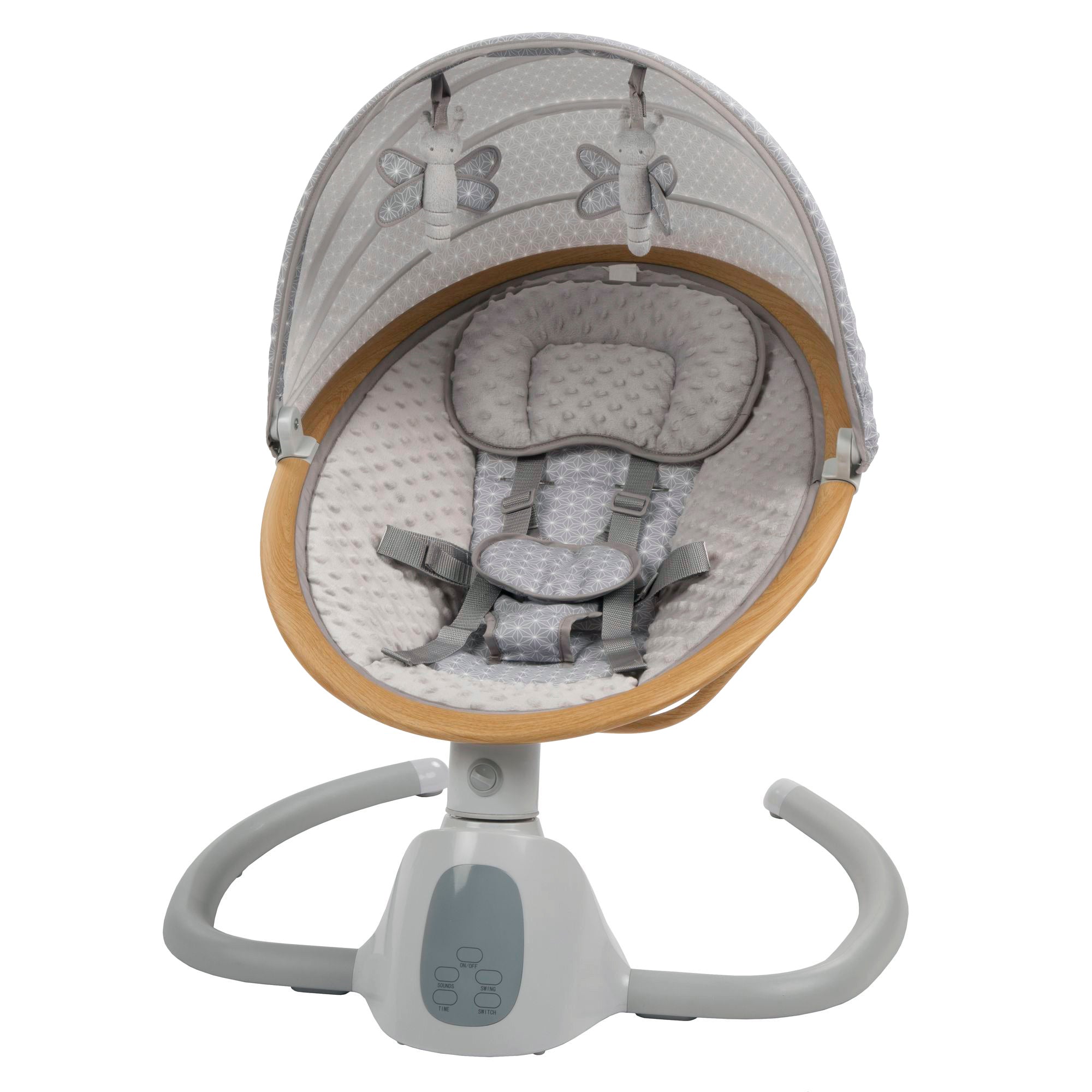 With its Bluetooth enabled digital touch screen and remote control, you'll be able to quiz your oldest on spelling words while easily changing the baby swing's speed or built in music with the remote, or play your baby's favorite songs from your smart phone while the swing is in Bluetooth mode – That’s one smart swing for busy parents;