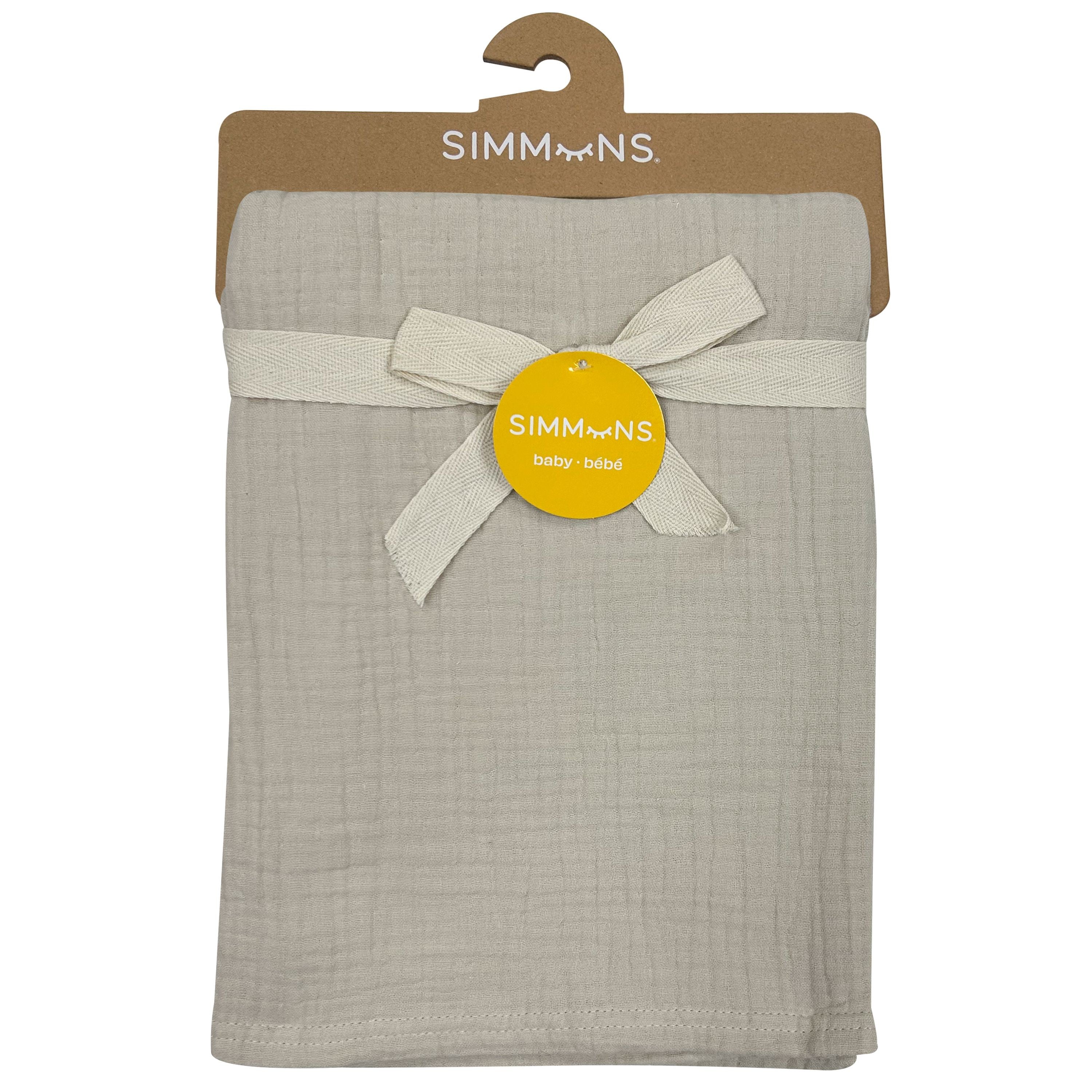 Gentle Comfort with the Simmons Deluxe 4-Ply Muslin Blanket for Baby Wrap your baby in the softest comfort with the Simmons Deluxe 4-Ply Muslin Blanket. Made from four layers of premium, breathable muslin fabric, this blanket is perfect for keeping your little one cozy, calm, and comfortable all day long. Its lightweight design offers just the right amount of warmth without overheating, ensuring your baby stays snug through every season. Whether you're using it for swaddling, tummy time, or as an extra layer in the stroller, this versatile blanket is an essential for your baby’s everyday comfort. Elevate your baby’s comfort with the Simmons Deluxe 4-Ply Muslin Blanket—because every moment with your little one deserves the softest touch.