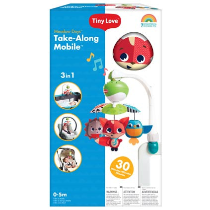 The Tiny Love Take Along Mobile is a colorful and engaging mobile that easily goes everywhere with your baby. From a very young age, babies will appreciate the sense of security and continuity invoked by taking this mobile along everywhere they go. It features 30 minutes of 5 different melodies to help soothe and amuse your little one. The colorful hanging toys spin to provide your baby with visual stimulation. This adaptable mobile is designed to easily attach to most play yards, strollers and bassinets so that you can take it along wherever the day takes you and baby.
