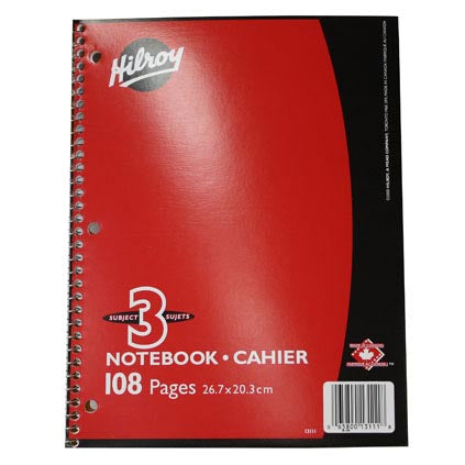 Keep Yourself Organized With The Hilroy 3 Subject Wide Ruled Notebooks. These Notebooks Are 3-Hole Punched, Making Them Ideal For School, Home And Office Use. These 8 X 10.5-Inch Spiral Notebooks Feature 24# Kraft Paper Dividers And Coil Wire Bindings To Help Them To Lay Flat When Open. Each 3-Subject Notebook Contains 108 Sheets Of Quality, Wide Ruled White Paper. Assorted Colour Covers. Hilroy Is The Brand For Today’S Busy Corporate Offices And Home Offices.