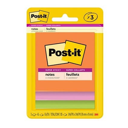 No Matter Where Your Next Great Idea Happens To Strike, Post-It® Super Sticky Notes Adhere To Practically Any Surface, Sticking Securely, And Removing Cleanly! Available In An Assortment Of Bold, Bright Colours To Keep You Organized.