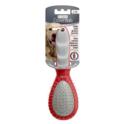 Le Salon Essentials Dog Bristle/steel Pin Combo Brush, Large. Gray Nylon Bristles, Steel Pins, Gray Pad, Red Handle. A 2-in-1 Grooming Brush That Removes Dead Hair While Penetrating Deep Into The Coat To Lift Out Dirt And Debris.