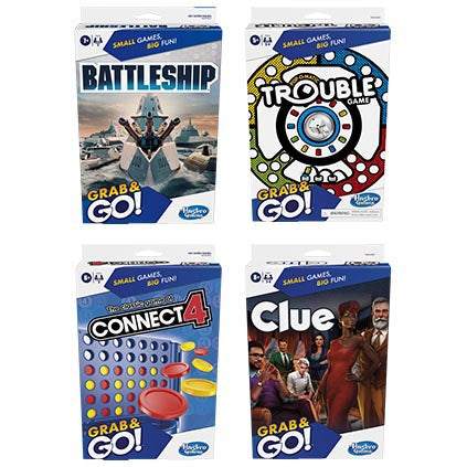 Same classic gameplay in a compact format! This Hasbro Grab and Go Games assortment features portable, travel-size versions of favorite Hasbro board games. Each game comes as an all-in-one game unit for easy storage and portability. Kids and adults alike can enjoy taking their favorite games on the go for playing anytime. Plus, these travel games make great birthday gifts, holiday gifts, and stocking stuffers! (Each sold separately. Subject to availability.) Hasbro Gaming and all related trademarks and logos are trademarks of Hasbro, Inc.