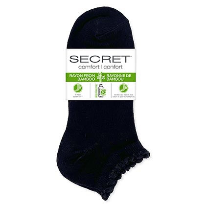 Secret 14813A Comfort Bamboo Flat Knit Low Cut Black 3pk D3