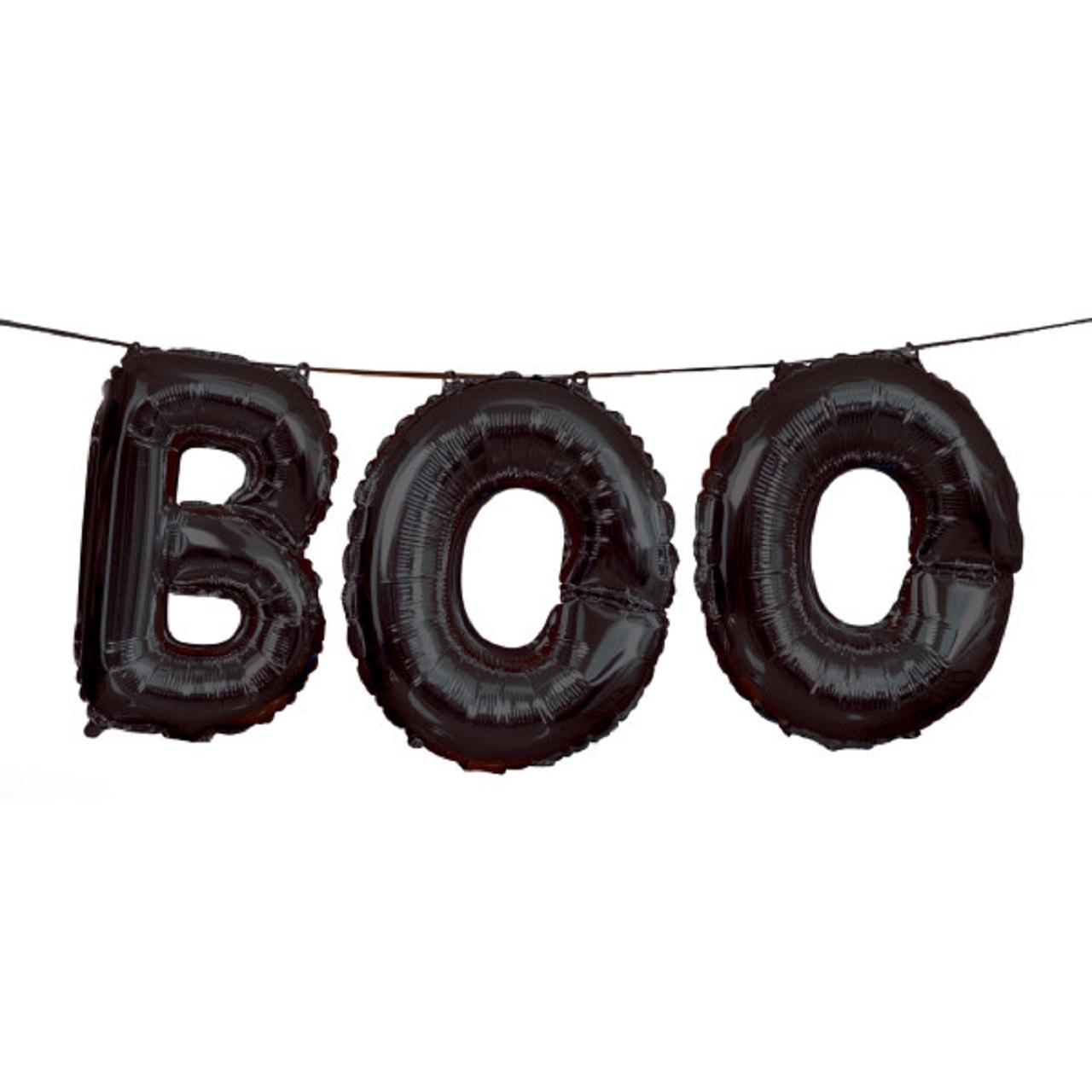 Give Your Guests A Real Fright With This Foil Black Boo Halloween Letter Balloon Banner Kit. With 3 Giant Foil Balloons, 1 Ribbon To Hang Them On, And A Plastic Straw All Included, You'Ll Have Everything You Need To Make A Show-Stopping Display At Your Halloween Party. To Assemble, Insert The Provided Straw Into The Self-Sealing Tabs On Each Balloon To Inflate Them (Do Not Inflate With Helium). Then, Just Thread Each Letter Onto The Ribbon Using The Perforated Tabs, And Your Balloon Banner Is Ready To Be Hung! Make Guests "Ohh" And "Ahh!" By Hanging This Banner On A Wall Above Your Snack Table. Or, Use It As A Fun Photo Booth Backdrop For Ghouls And Gals To Pose In Front Of! Find Everything Else You Need To Bring Down The Haunted House By Shopping All Of Our Halloween Party Supplies.