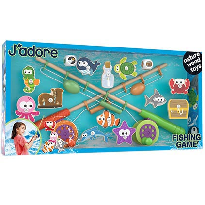 Reel In Hours Of Fun With J’Adore Fishing Treasure Game Play Created And Designed By Quercia-Delvigne. Take Turns With A Set Of Wooden Rods Fishing Out 10 Different Magnetic Pieces Ranging From Sea Creatures To A Boot Based On The Roll Of A Dice. Collect
