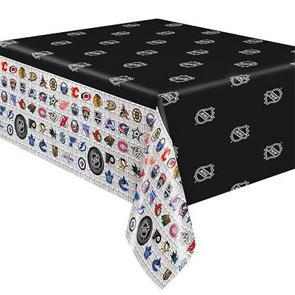 Get Your Table Ready For A Face-Off With Our Nhl Plastic Tablecloth. Measuring 84 By 54 Inches, This Plastic Table Cover Features The Nhl Logo And All The Team’S Logos Along The Side – Amazing For Your Hockey Birthday Party. Simply Place This Water-Resistant Cover On Your Party Table To Protect It From Spills And Crumbs. Then, Once The Party Winds Down, Simply Toss This Disposable Cover In The Trash For A Quick And Easy Cleanup. Discover More Ways To Celebrate Off The Ice And Shop The Rest Of Our Nhl Themed Party Supplies.