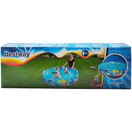 Designed for exercise and great outdoor fun, the quality-tested Fill-n-Fun™ paddling pool is all about fun! Measuring 183 cm in diameter and 38 cm high, the paddling pool is perfect for kids to splash around and play in. The outer walls feature cool, colorful underwater designs. The strong, sturdy PVC walls are securely bonded to the durable vinyl floor. Splashing around in the sun has never been more fun than with the Fill-n-Fun™ paddling pool from Bestway®.