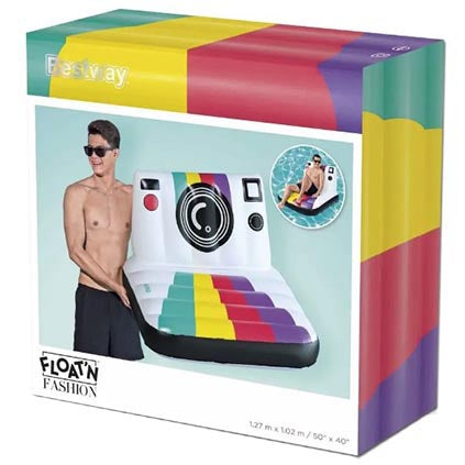 Get Ready For Your Close-Up With The Bestway® Pose N' Float™ Pool Lounge! This Pool Lounge Features A Colorful Camera Design, Which Creates The Perfect Backdrop For All Of Your Pool Selfies At Your Next Backyard Party. The Pose N' Float Pool Lounge Fits One Adult And Will Take You Back To The Days Of Instant Cameras And Snapshots As You Relax Against The Comfortable Backrest. The Float Is Easy To Inflate, Deflate, And Store So Switching Up Locations Is Easy. Candid Or Posed, Any Picture You Take On The Bestway Pose N' Float Lounge Will Be Worth Posting. Now, Lights, Camera...Float!